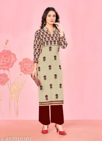 Name : WHITE CAMEL Women’s Cotton Printed Straight Kurti