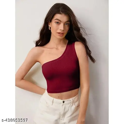 Name : WHITE CAMEL Women’s Sleeveless Bodycon Tank Top, One Shoulder, Cropped Camisole Top Bra